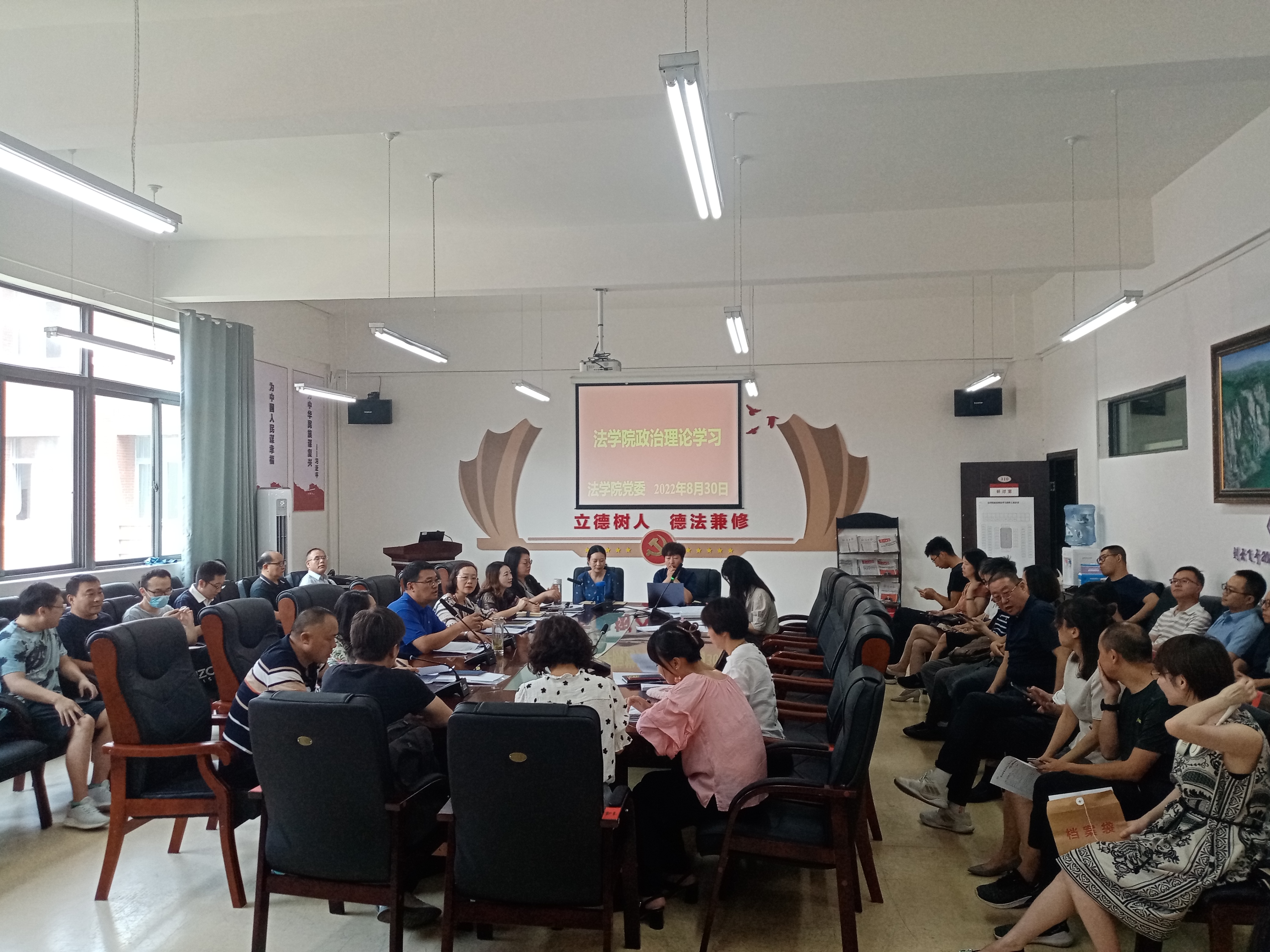 (法学院 图文/报道 徐方)2022年8月30日下午,法学院党委在文德楼A8-310会议室围绕“作风建设”专题组织召开2022年度第九次教职工政治理论集体学习研讨会。院领导及全院教职工出席会议,会议由院党委书记詹伟主持。