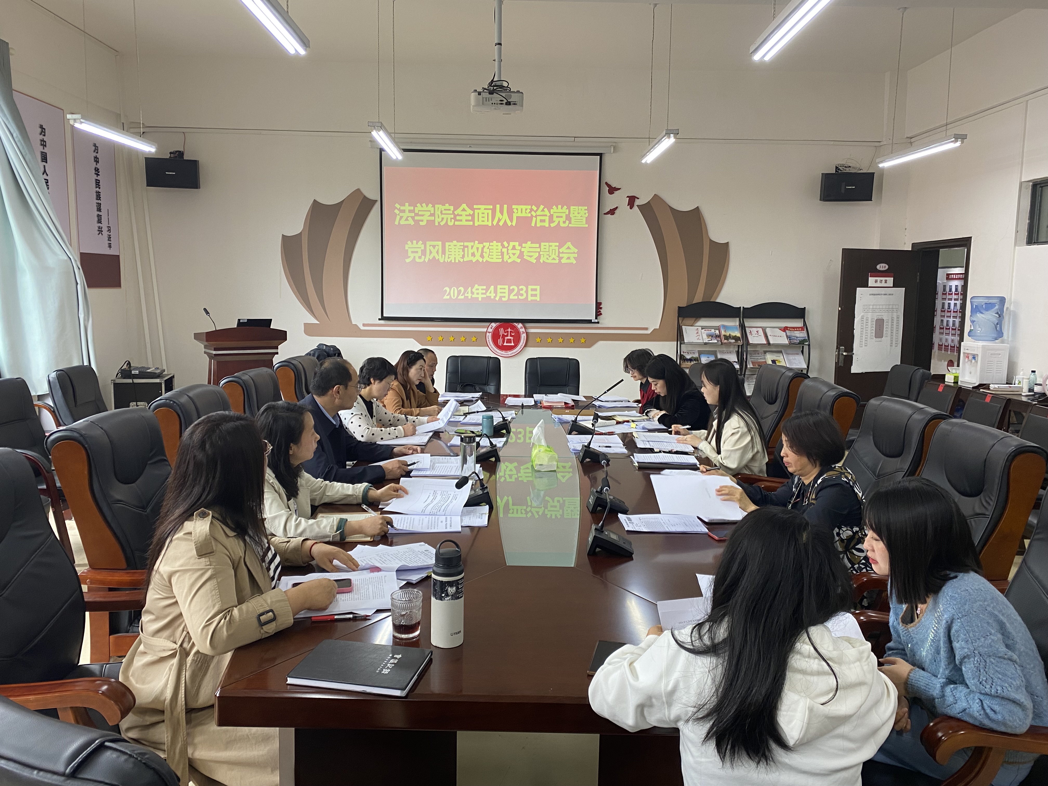 (法学院 莫丹洵 报道|摄影 )2024年4月23日,法学院党委在文德楼A8-310会议室召开2024年上半年全面从严治党暨党风廉政建设专题会。党委班子成员、各科室负责人、系负责人、党支部书记等参会,院党委书记邵新顺主持会议。