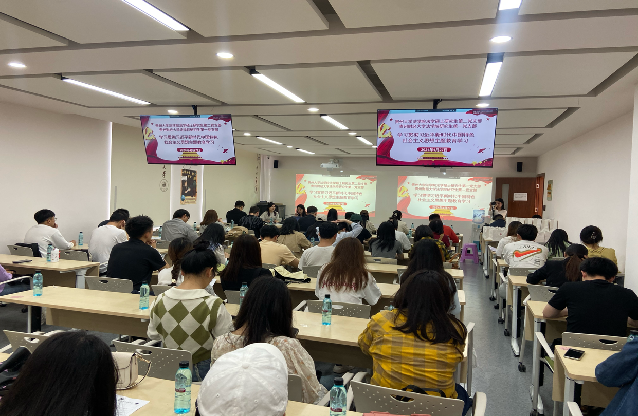 (法学院 图文/报道 魏贤鹏)为了增强支部活力,加强共建支部的经验交流,2024年4月27日下午,我院研究生第一党支部与贵州大学法学院法学硕士研究生第二党支部在贵州大学逸夫楼116智慧教室共同开展了“国家安全,青春挺膺”支部共建活动,两支部党员、发展对象、积极分子近八十人参加活动。