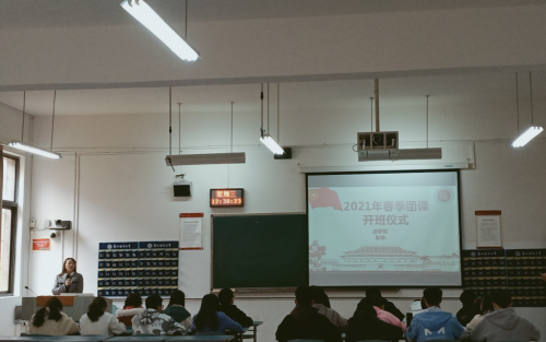 2021年3月24日中午12:30,在勤学楼2-26教室,法学院举办了2020-2021学年第二学期团课开班仪式暨团课第一堂课,法学院党委副书记彭华出席开班仪式并讲话,随后为参加本次团课的20余名学员讲授了第一堂课。