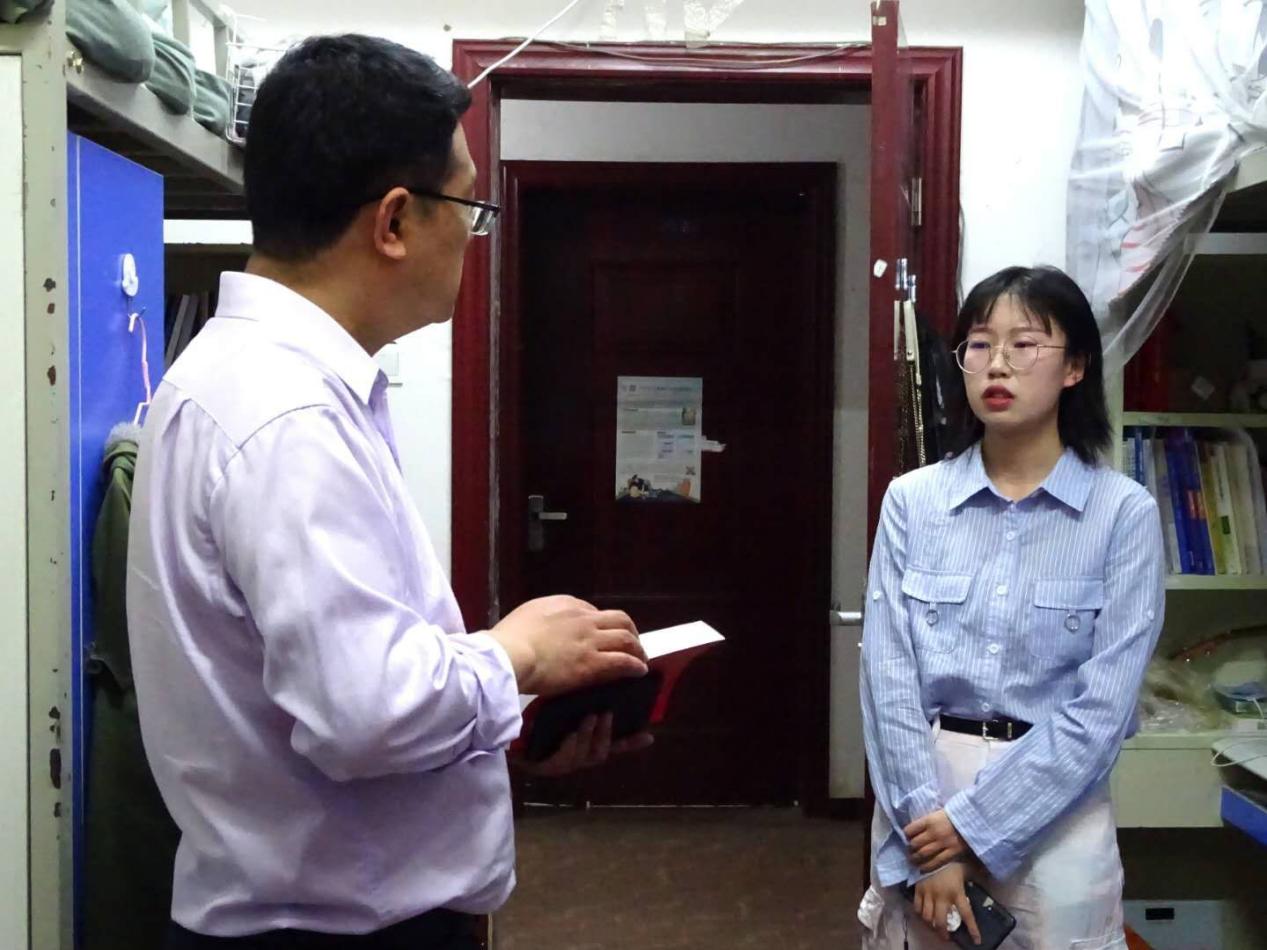 202141清明小长假前夕,法学院党委书记詹伟带领学生辅导员走访了我院学生宿舍新学期开学后学生的学习和生活状况以及小长假的安排进行了关心和询问