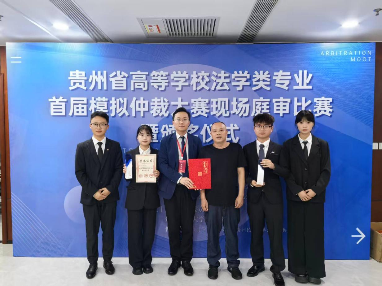 (法学院 饶子豪 报道、摄影)2025年9月27日,由贵州省法学会法学教育研究会、贵州省法学会仲裁法学研究会联合主办,贵阳仲裁委员会、贵州民族大学法学院及仲裁学院(贵阳仲裁委员会、贵州民族大学共建)共同承办的“贵州省高等学校法学类专业首届模拟仲裁大赛”盛大举行。本次赛事汇聚了来自省内14所高校的精英队伍,经过激烈角逐,milan体育法学院代表队凭借扎实的专业功底与卓越的团队协作能力脱颖而出,最终荣膺季军。