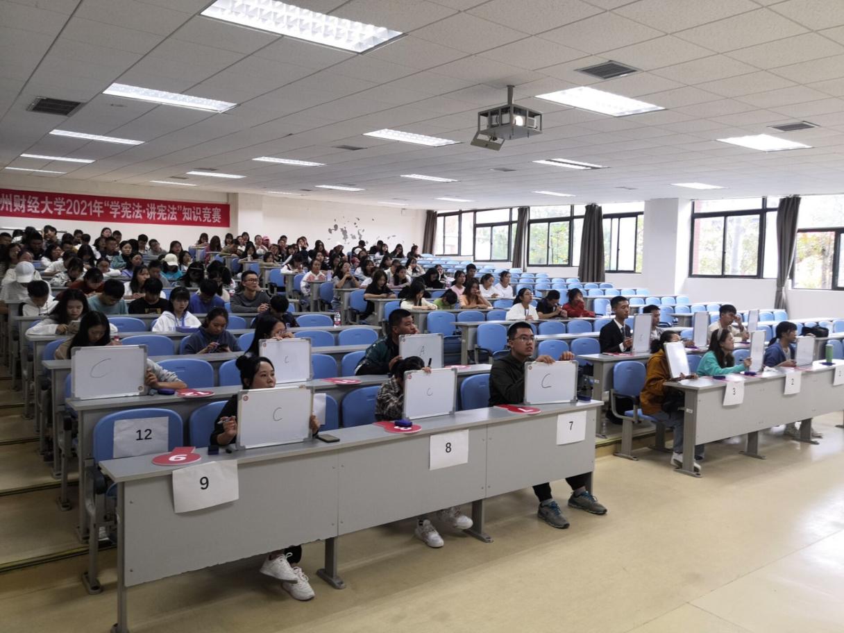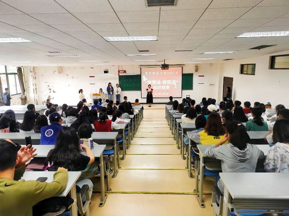 为深入开展以宪法为核心的法治宣传和教育,加强对米兰网址法治思想的学习贯彻,不断提高milan体育学生法律意识,引导学生深入遵崇宪法、学习宪法。10月9日上午,milan体育在乐学楼1-1教室举行2021年“学宪法 讲宪法”知识竞赛。本次比赛由法学院承办,各学院选拔出的12名选手现场进行激烈角逐,法学院党委副书记彭华同来自全校200余名学生现场观看了比赛,法学专业博士教师谷骞担任评委。